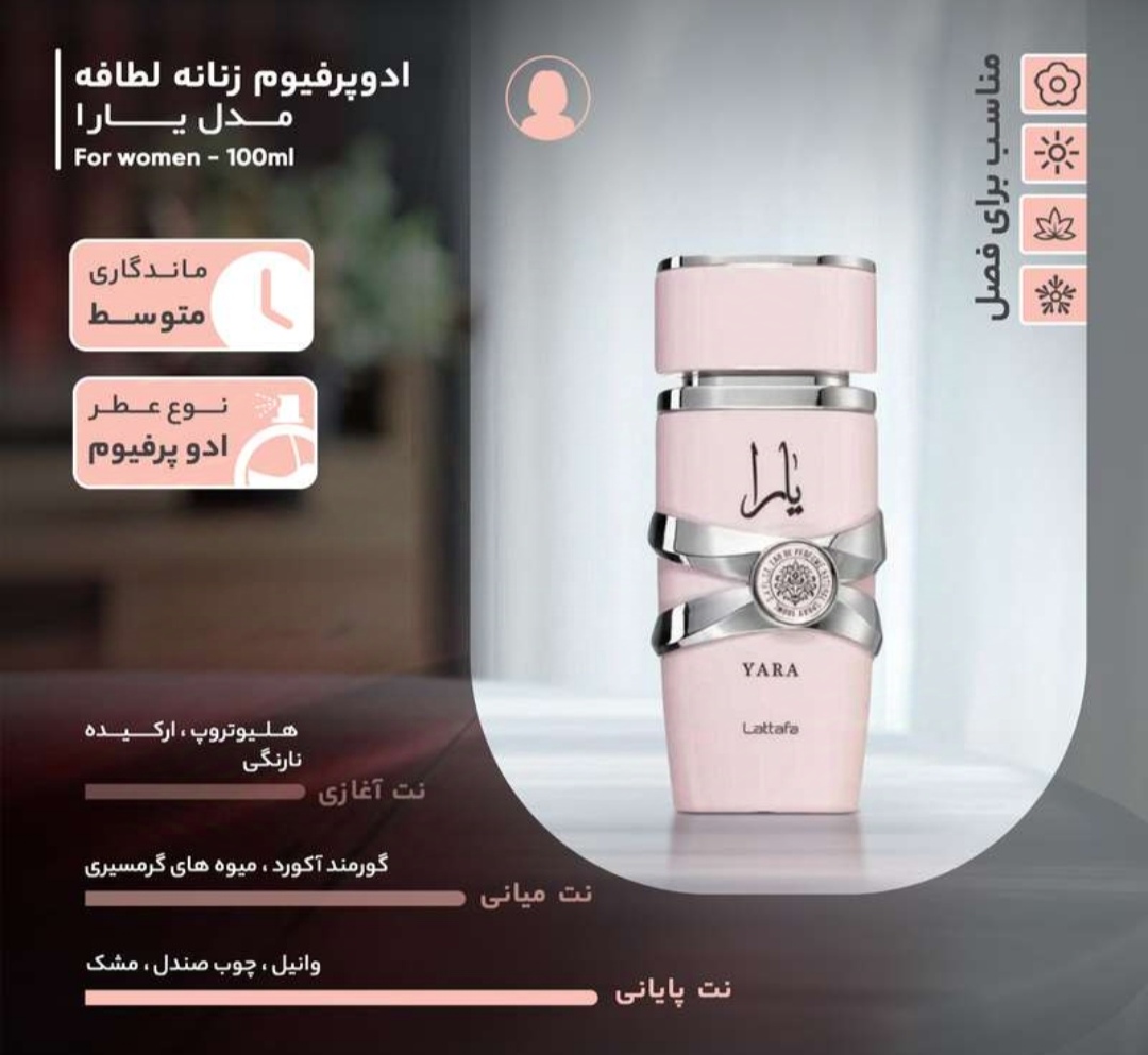 ادکلن یارا صورتی نه تنها با رایحهای شیرین و معتدل قلب بسیاری از عاشقان عطر را تسخیر کرده، بلکه این عطر زنانه و شیک با طراحی خلاقانه و بوی منحصر به فرد خود، انتخابی ایدهآل برای خانمهایی است که به دنبال عطر خاصی برای مناسبتهای ویژه هستند. یارا صورتی با رایحهای گرم و شرقی، جلوهای ماندگار از زیبایی و جذابیت به ارمغان میآورد و هر بار استفاده از آن، حسی از اعتماد به نفس و وقار را برای شما به ارمغان خواهد آورد.