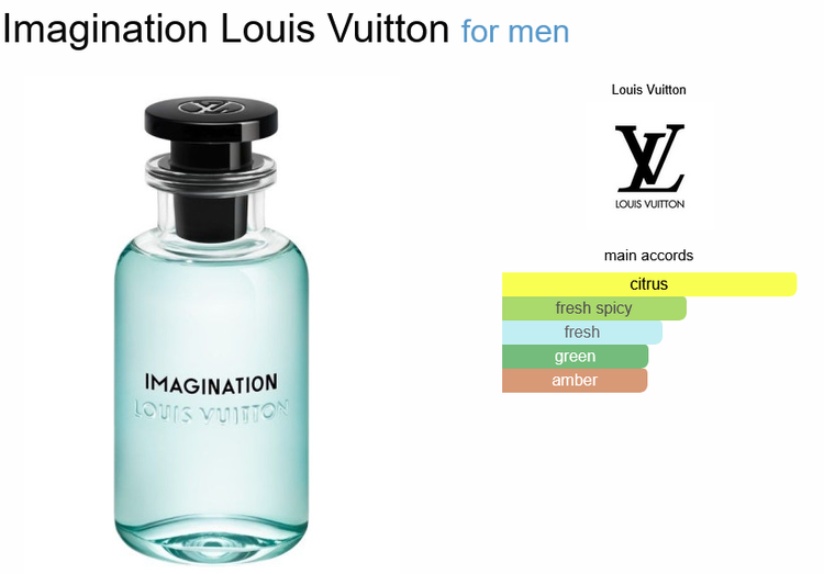 عطر Imagination از برند Louis Vuitton یک عطر مرکباتی معطر برای آقایان است. Imagination در سال 2021 به بازار عرضه شد. طراح این عطر Jacques Cavallier Belletrud است. نتهای اولیه آن شامل مرکبات، ترنج کالابریایی و پرتقال سیسیلی است؛ نتهای میانی آن شامل بهار نارنج تونسی، زنجبیل نیجریهای و دارچین سیلان است؛ نتهای پایه آن شامل چای سیاه چینی، آمبروکسان، چوب گایاک و کندر است