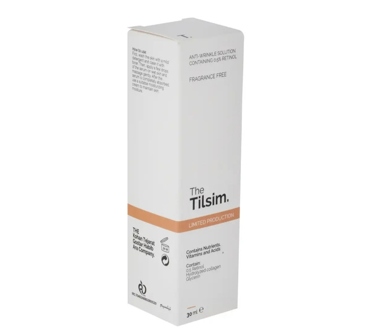 سرم ضد چروک پوست تیلسیم مدل رتیونل 0.5 درصد مناسب انواع پوست حجم 30 میلی لیتر