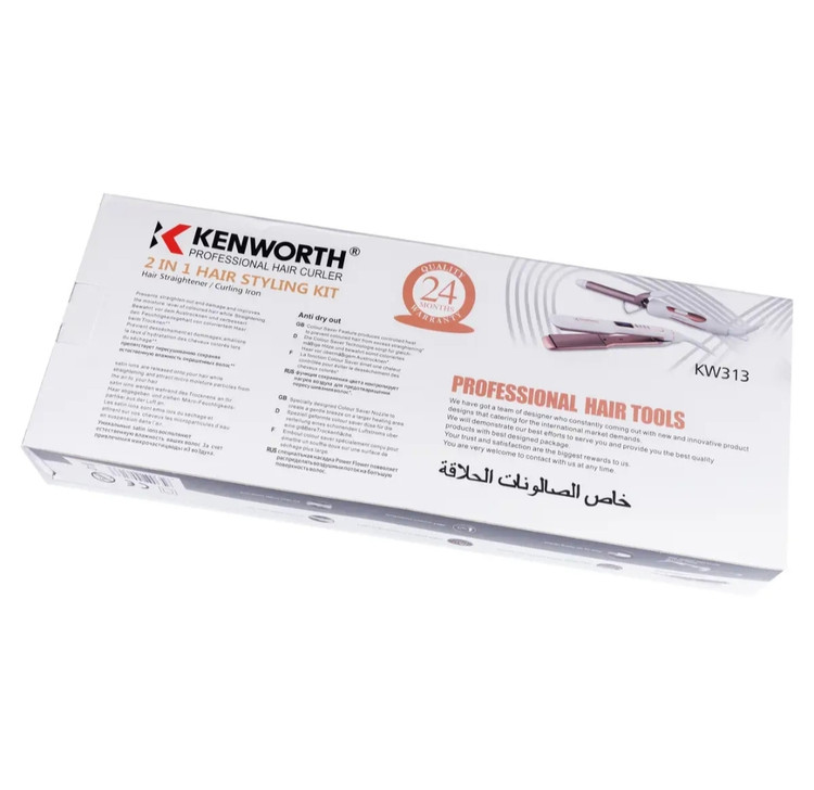 اتو مو کنورث به همراه فر کننده مو مدل kenworth KW313 دارای قابلیت تنظیم بازه دمایی از 580 تا 1080 درجه فارنهایت میباشد و زمان لازم برای داغ شدن این اتوی مو تنها 30 ثانیه است .