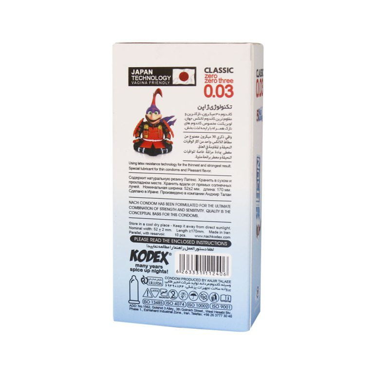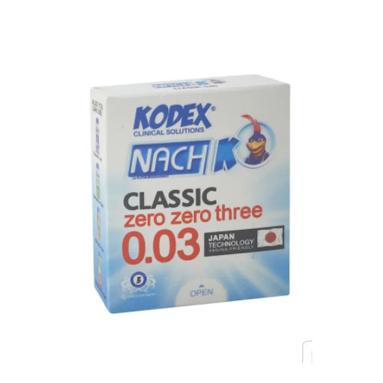کاندوم ناچ کدکس مدل 0.03 جدید ترین و نازک ترین کاندوم کدکس میباشد که باعث احساس بهتر هنگام رابطه میشود کیفیت بالای این محصول و ضد پارگی سبب پرفروش بودن این محصول شده
